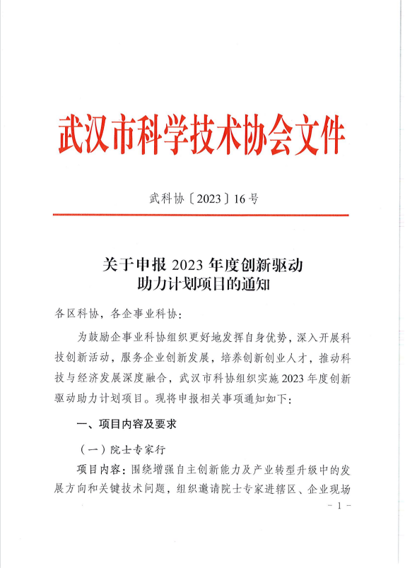 关于申报2023年度创新驱动助力计划项目的通知
